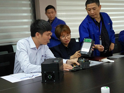 在公司領導及相關技術人員的引導下,考察團參觀了公司產線的每一道工序進行實地的了解與考察,zui終對于我們生產的高標準給予了高評價!同時也現場拆機更透徹清晰的了解了產品的工藝及性能!